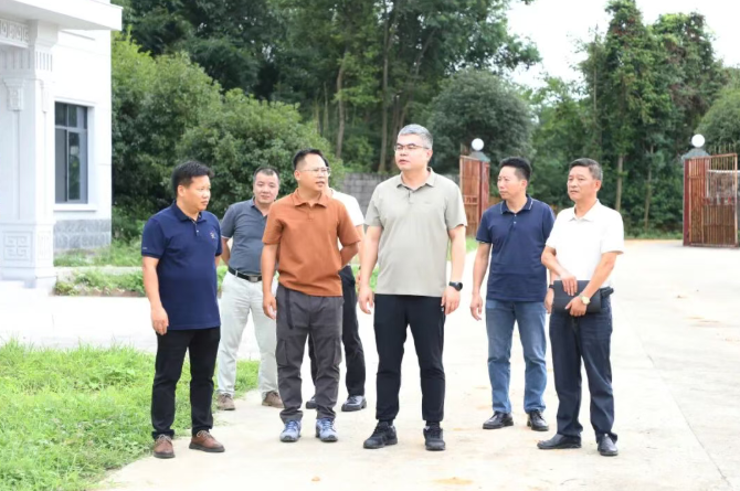 8月29日,县委书记于福坚(右四)到融安县泗顶马田光伏项目调研项目建设情况。(杨曼 摄)