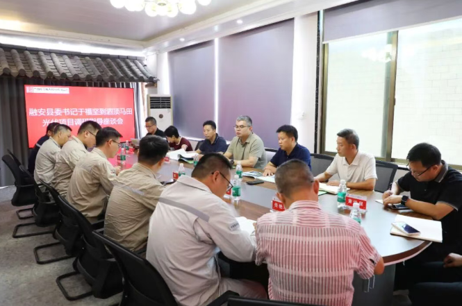 在调研融安县泗顶马田光伏项目座谈会上,于福坚认真听取项目进展情况的汇报,仔细地了解项目推进过程中存在的困难。于福坚强调,泗顶马田光伏项目是融安县推动绿色能源产业升级的关键项目,有关部门与企业要强化协作联动,扎实做好群众沟通与服务工作,在严守工程质量底线、筑牢安全生产防线的前提下,全力加快项目建设进度,确保早日发挥项目效益。