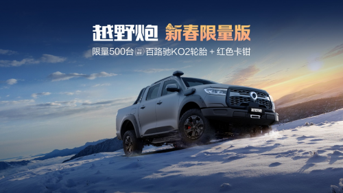 作为我国首款全地势量产越野大皮卡,越野炮以“原厂改装”身先士卒的优势,深受越野玩家信任,车型销量长时间稳居我国越野皮卡单车型销量前列。本届改装车展上,越野炮新春定量版也同步展出。越野炮新春定量版将价值万元的“百路驰KO2轮胎+赤色卡钳”定量套装加装于越野炮2.0T汽油高阶版、越野炮2.0T汽油珠峰版、越野炮2.4T柴油高阶版中,让车辆极致功能再跃升。